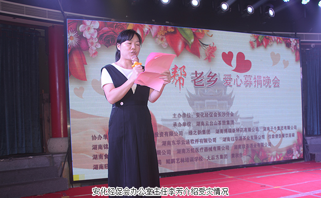 2017年8月13日晚,湖南安化經(jīng)促會(huì)長(zhǎng)沙分會(huì)舉辦的“愛(ài)家鄉(xiāng)·幫老鄉(xiāng)”募捐晚會(huì)在長(zhǎng)沙茉莉花大酒店成功舉行。綠之韻集團(tuán)副總經(jīng)理胡均安、夏運(yùn)良親臨大會(huì)現(xiàn)場(chǎng),帶領(lǐng)綠之韻愛(ài)心志愿者、安化籍員工以實(shí)際行動(dòng)支持家鄉(xiāng)災(zāi)后重建,回報(bào)桑梓。
