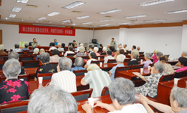 上午9點(diǎn)30分,由胡國(guó)安董事長(zhǎng)、劉云書記帶隊(duì)的綠之韻黨團(tuán)成員驅(qū)車抵達(dá)湖南省軍區(qū)五里牌干休所。剛?cè)霑?huì)場(chǎng),綠之韻愛(ài)心慰問(wèn)成員們就受到了革命老前輩們的熱烈歡迎,致以筆挺的軍禮,軍民魚(yú)水之情盡展其間。慰問(wèn)座談會(huì)上,湖南省軍區(qū)五里牌干休所政委謝祝安、所長(zhǎng)周祖德,對(duì)綠之韻集團(tuán)胡國(guó)安董事長(zhǎng)與愛(ài)心志愿者的到來(lái)表示衷心感謝,并詳細(xì)介紹了五里牌干休所的老軍人現(xiàn)狀。胡國(guó)安董事長(zhǎng)細(xì)細(xì)聆聽(tīng),他在會(huì)議上說(shuō)到:90年來(lái),中國(guó)人民解放軍在中國(guó)共產(chǎn)黨的領(lǐng)導(dǎo)下,為了人民解放、民族獨(dú)立、國(guó)家富強(qiáng),進(jìn)行了英勇頑強(qiáng)、艱苦卓絕的斗爭(zhēng)。無(wú)論是在烽火連天的戰(zhàn)爭(zhēng)年代,還是在和平建設(shè)和改革開(kāi)放時(shí)期,英雄的中國(guó)人民解放軍,為祖國(guó)、為人民都作出了巨大貢獻(xiàn)。綠之韻集團(tuán)作為一家具有高度社會(huì)責(zé)任感的民族企業(yè),有責(zé)任及義務(wù)為社會(huì)奉獻(xiàn)出我們的一份力量。為了感謝老前輩們?cè)趹?zhàn)爭(zhēng)年代為國(guó)家立下的汗馬功勞,在八一建軍節(jié)來(lái)臨之際,我們向所有的老革命、老前輩,我們偉大的英雄致以最誠(chéng)摯的敬意。隨后,胡國(guó)安董事長(zhǎng)與他們一一握手、問(wèn)候,祝他們節(jié)日快樂(lè),健康長(zhǎng)壽。