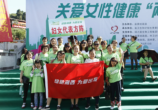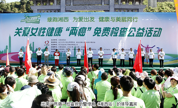 為切實(shí)把這項(xiàng)“造福廣大農(nóng)村家庭和關(guān)愛女性健康的民心工程”不折不扣地落實(shí)好,讓適齡婦女群眾真正得實(shí)惠、普受惠、長(zhǎng)受惠。2017年5月13日,由中共湖南省委統(tǒng)戰(zhàn)部、湖南省婦女聯(lián)合會(huì)、湖南省衛(wèi)生和計(jì)劃生育委員會(huì)、湖南省海外聯(lián)誼會(huì)、中共湘西自治州委統(tǒng)戰(zhàn)部、湘西自治州婦女聯(lián)合會(huì)、湘西自治州衛(wèi)生和計(jì)劃生育委員會(huì)、湘西自治州海外聯(lián)誼會(huì)以及綠之韻集團(tuán)聯(lián)合開展的“關(guān)愛女性健康‘兩癌’免費(fèi)檢查暨綠跑公益活動(dòng)”在湘西自治州吉首市舉行。