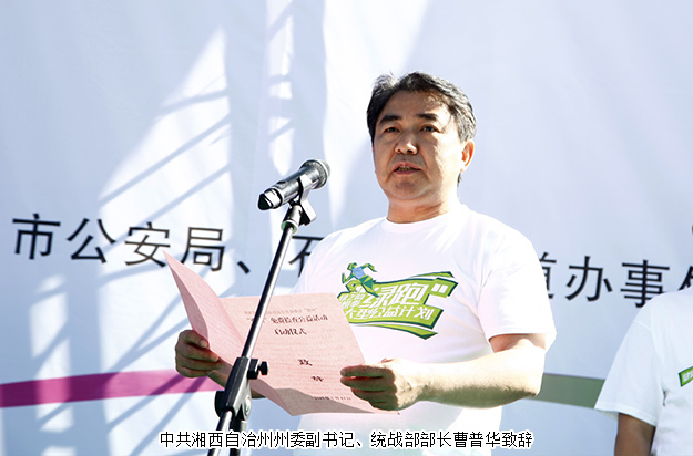 湖南省政協(xié)副主席、民盟省委主委楊維剛,中共湖南省委統(tǒng)戰(zhàn)部副部長(zhǎng)胡東風(fēng),湖南省婦聯(lián)黨組書記、主席姜欣,州委副書記、州長(zhǎng)龍曉華,州委副書記、統(tǒng)戰(zhàn)部部長(zhǎng)曹普華,州委常委、吉首市委書記劉珍瑜,州人大常委會(huì)副主任、民盟州委主委劉小剛,州人民政府副州長(zhǎng)李平,州政協(xié)副主席向頂天及湖南省政協(xié)委員、省工商聯(lián)(總商會(huì))副會(huì)長(zhǎng)、省慈善總會(huì)副會(huì)長(zhǎng)、綠之韻集團(tuán)董事長(zhǎng)胡國(guó)安,湘籍奧運(yùn)冠軍楊霞,綠之韻集團(tuán)(直銷業(yè)務(wù))副總經(jīng)理胡均安,綠之韻集團(tuán)黨委書記劉云等領(lǐng)導(dǎo)嘉賓,與來(lái)自全國(guó)各地的健康跑愛好者、綠之韻愛心志愿者、當(dāng)?shù)厝罕姽灿?jì)2000多人參與了此次活動(dòng),獻(xiàn)愛湘西,踐行公益,助力健康中國(guó)。
