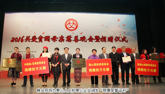 為愛歌唱,用心發(fā)聲,用行動(dòng)去改變。晚會(huì)現(xiàn)場(chǎng)啟動(dòng)了安娜國(guó)際愛心基金、閆國(guó)超藝術(shù)愛心基金、聚心國(guó)際慈善基金、明清感恩社慈善基金等8個(gè)專項(xiàng)基金,得到了眾多的愛心人士、企業(yè)及國(guó)際慈善友人的愛心捐贈(zèng),共募集款物280多萬(wàn)元。綠之韻集團(tuán)黨委書記劉云代表綠之韻公益基金會(huì)為愛心企業(yè)頒發(fā)榮譽(yù)證書,并動(dòng)情表示:作為家庭的核心,沒有幸福的母親,就沒有幸福的家庭。在貧困人口中,貧困母親的生活境遇最為艱辛。我們要在生活上幫助她們,在經(jīng)濟(jì)上資助她們,在精神上關(guān)心她們。幫助了一個(gè)貧困母親,就是幫助了一個(gè)家庭;每一個(gè)母親的改變,就是無(wú)數(shù)個(gè)家庭的受益。