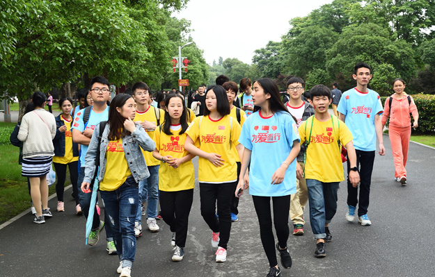 從橘子洲頭毛澤東青年藝術雕像處出發(fā),大家三五成群,沿著既定的線路徒步前行,相識的、不相識的,大家揮舞雙手,以眼神鼓勁,用微笑問候,朝著一個共同的夢想、共同的愛心、共同的追求邁進。行走隊伍吸引了許多民眾的廣泛關注,民眾們自發(fā)自覺融入到愛心隊伍當中。此次行走活動途徑攬月亭、橘洲客棧、詩詞碑、桃園等景點,湘江兩岸風光盡收眼底,沿途的歡聲笑語和美麗風景讓大家忘記了行走的疲勞。