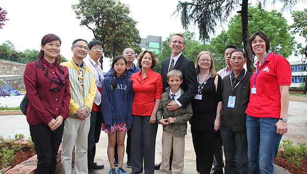 九點(diǎn)半到達(dá)衡陽春天服務(wù)中心時(shí),活動現(xiàn)場已然是一片歡樂的海洋。衡陽春天服務(wù)中心的新家院子用鮮艷的花朵裝扮一新,小朋友們穿著漂亮的衣衫,拿著彩色的氣球,在護(hù)理員的陪同下玩耍。還有很多和綠之韻人一樣的愛心人士、志愿者以及遠(yuǎn)道而來的國際義工們都?xì)g聚在此。沒有陌生與隔閡,不分國籍和語言,胡國安董事長和勞嘉副總裁帶著綠之韻志愿者們和孩子一起說話、唱歌、做操……每一個(gè)人臉上都洋溢著快樂純粹的笑容。