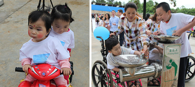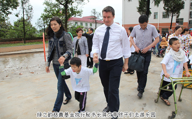 隨后,綠之韻愛心志愿者們與分配的小家庭一起,分組陪伴孩子們從新家院子到游樂場玩耍,同孩子們一起用餐和學(xué)習(xí)。雖然一些孩子動作遲鈍、在語言交流上有一些困難,但孩子們很快和熱情的綠之韻的愛心志愿者們打成一片,玩得非常開心。胡國安董事長和勞嘉副總裁親自為坐在輪椅上的小朋友系上特制秋千的綁帶,讓他們也感受到在秋千上飛起來感覺,孩子們的笑聲感染了現(xiàn)場每一個(gè)人。