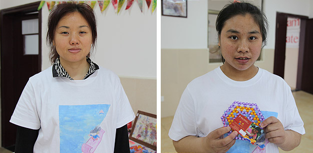 在三樓的手工藝品展覽室,綠之韻的志愿者們進(jìn)入到了屬于孩子們自己的奇妙世界:一幅幅想象力豐富的的彩色畫作、各種各樣精致的手工作品。手工室張永紅老師告訴志愿者們,她來服務(wù)中心已經(jīng)9年,從一開始的護(hù)理員,到自學(xué)手工給孩子教學(xué),照料好這些孩子需要付出超出常人的耐心和勇氣。問及為何能夠堅(jiān)持這么多年,她說,就像愛自己的孩子一樣,愛著愛著就成了習(xí)慣。