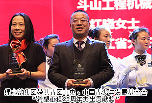 2014年11月25日,共青團(tuán)中央、中國青少年發(fā)展基金會(huì)在北京舉行“希望工程25年暨公益新項(xiàng)目發(fā)布”活動(dòng)。共青團(tuán)中央書記處常務(wù)書記賀軍科,中國青基會(huì)副理事長兼秘書長涂猛等領(lǐng)導(dǎo),綠之韻集團(tuán)、茅臺(tái)集團(tuán)、可口可樂、中國平安、寶潔中國、海爾集團(tuán)、梅賽德斯—奔馳等179家捐贈(zèng)企業(yè)負(fù)責(zé)人,以及長期支持希望工程發(fā)展的海內(nèi)外各界捐款人和希望工程受益人代表出席大會(huì)。會(huì)上,因在希望工程事業(yè)中做出的重大貢獻(xiàn),綠之韻集團(tuán)獲共青團(tuán)中央、中國青少年發(fā)展基金會(huì)“希望工程25周年杰出貢獻(xiàn)獎(jiǎng)”,胡國安董事長受邀出席頒獎(jiǎng)禮。本次活動(dòng)由中央電視臺(tái)著名主持人劉芳菲傾情主持。