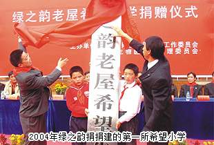 本次希望工程25年活動(dòng)中,包括綠之韻集團(tuán)在內(nèi)的179家捐贈(zèng)企業(yè)和23個(gè)捐贈(zèng)個(gè)人代表獲得了“希望工程25年杰出貢獻(xiàn)獎(jiǎng)”,共青團(tuán)中央書記處常務(wù)書記賀軍科親自頒獎(jiǎng)。關(guān)愛生命、造福人類是綠之韻集團(tuán)一貫秉承的理念。綠之韻在發(fā)展實(shí)業(yè)的同時(shí),積極承擔(dān)社會(huì)責(zé)任,產(chǎn)業(yè)富民,回饋社會(huì),并于2007年專門設(shè)立了“綠之韻文化扶貧公益基金”,用于湖南農(nóng)村青少年扶貧計(jì)劃和希望工程助學(xué)行動(dòng)籌措資金。自2004年10月19日,綠之韻捐款18.18萬元捐建第一所綠之韻老屋希望小學(xué)以來,全國各地已先后有綠之韻沙龍希望小學(xué)、綠之韻珠山希望小學(xué)、綠之韻大橋希望學(xué)校、綠之韻后官希望小學(xué)誕生、綠之韻汶川希望小學(xué)、綠之韻惠民希望小學(xué)、綠之韻四子王旗希望小學(xué)、綠之韻湘鄉(xiāng)月山希望學(xué)校等10所希望學(xué)校相繼建成,給貧苦地區(qū)失學(xué)孩子們送出了知識(shí)、希望和夢想。除此之外,綠之韻還積極開展了“綠之韻樹人行動(dòng)”、“綠之韻愛心圖書館工程”、“綠韻圓夢?書香助學(xué)”等多項(xiàng)品牌主題公益活動(dòng)。十一年來,綠之韻一直致力于青少年公益事業(yè)、關(guān)注希望工程,累計(jì)捐款達(dá)到3000多萬元,于2014年9月被中華慈善總會(huì)授予“中華慈善突出貢獻(xiàn)獎(jiǎng)”,贏得了社會(huì)各界人士的廣泛好評(píng)。