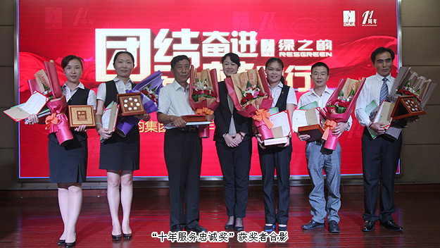 最后,綠之韻集團(tuán)胡國(guó)安董事長(zhǎng)發(fā)表了重要講話,他向五年服務(wù)英才獎(jiǎng)、十年服務(wù)忠誠(chéng)獎(jiǎng)獲得者,以及所有員工的辛勤付出表示誠(chéng)摯的謝意。創(chuàng)立之初,綠之韻就將“家”文化納入到企業(yè)文化體系,將打造“最具幸福感企業(yè)”作為行動(dòng)目標(biāo),竭力讓員工、經(jīng)銷(xiāo)商和企業(yè)不斷成長(zhǎng),不斷學(xué)習(xí),不斷成功,契合共榮,同享精彩。他指出,未來(lái)三年,綠之韻將要努力做好三件事情:一是進(jìn)一步提升公司企業(yè)文化,只有文化的累積與潤(rùn)澤才能形成強(qiáng)大的凝聚力和戰(zhàn)斗力,推動(dòng)企業(yè)不斷向前發(fā)展;二是以產(chǎn)品為導(dǎo)向,要研制、開(kāi)發(fā)出獨(dú)一無(wú)二、具有自主知識(shí)產(chǎn)權(quán)、具備核心競(jìng)爭(zhēng)力的產(chǎn)品,真正實(shí)現(xiàn)“依靠拳頭產(chǎn)品打天下”的發(fā)展目標(biāo);三是加強(qiáng)教育培訓(xùn)工作,不斷壯大講師隊(duì)伍,提升教育水平,豐富培訓(xùn)課程,在同行業(yè)競(jìng)爭(zhēng)中立于不敗之地。同時(shí),綠之韻將積極推進(jìn)“八大戰(zhàn)略”,希望每一位綠之韻人明確目標(biāo)、堅(jiān)定信心、團(tuán)結(jié)協(xié)作,充分發(fā)揮出自己的聰明才智,實(shí)現(xiàn)自己的夢(mèng)想,為綠之韻成為“最受尊敬的百年企業(yè)”而不懈奮斗!