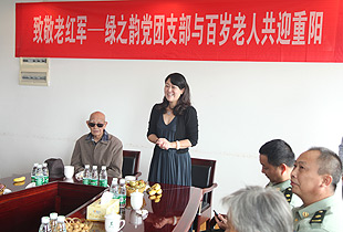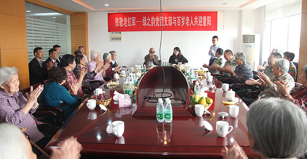 窗外的天空涼風(fēng)漸起,而窗內(nèi)的氣氛卻熱情洋溢,在綠之韻的3樓會(huì)議室里,“致敬老紅軍——綠之韻黨團(tuán)支部與百歲老人共迎重陽”的座談會(huì)正活躍而熱烈地進(jìn)行著。勞嘉副總裁首先作了摯情發(fā)言:“值此國慶前夕,重陽來臨之際,湖南省軍區(qū)東湖干休所的老紅軍、老干部,以及瞿所長、謝政委等各位軍官同志蒞臨綠之韻集團(tuán)參觀、指導(dǎo),是我們無上的榮耀,語言不足以表達(dá)我們無比激動(dòng)、感動(dòng)的心情,我謹(jǐn)代表綠之韻全體領(lǐng)導(dǎo)及員工,向在座各位老前輩們致以崇高的敬意,你們辛苦了!”并向大家介紹了綠之韻集團(tuán)所秉持的理念與精神,以及從2006年建設(shè)黨團(tuán)支部至今所開展的一系列慈善幫扶活動(dòng),得到了在座老前輩們的一致嘉許與肯定。