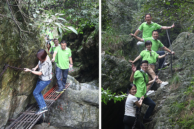 悠悠蒼穹,思接千載。在安化縣的崇山峻嶺和山澗溪流之間,綿延著一條神秘的茶馬古道。千百年來,無數(shù)的馬幫在這條道路上默默行走,悠遠(yuǎn)的馬鈴聲,回蕩在山谷、急流和村寨上空,開辟了一條通往域外的經(jīng)貿(mào)之路,形成了世界上地勢最高、山路最險、距離最遙遠(yuǎn)的茶馬文明古道。在關(guān)山峽谷層巖疊翠,怪石嶙峋的道路上行走,綠之韻伙伴們盡情體驗了一番攀巖探險的刺激和樂趣。正是因為古道的艱險超乎尋常,沿途壯麗的自然景觀也不斷地激發(fā)人潛在的勇氣、力量和忍耐?!安桉R古道馬幫所經(jīng)歷的冒險性是人所共稱道的,他們身上最為突出的特征就是他們的冒險精神。為了生存,為了貿(mào)易獲利,馬幫們幾乎是以自己的生命去冒險。這種冒險體現(xiàn)在三個方面:一是生意上的冒險,二是面對嚴(yán)峻的大自然的冒險,三是土匪強盜的威脅。馬幫的這種冒險精神,值得我們每一個綠之韻人深思和學(xué)習(xí)!”綠之韻總裁助理方彥雄在尋蹤茶馬古道途中感慨萬千。