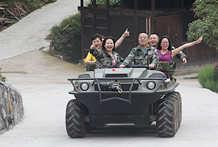 雪峰山因山頂長年積雪而得名,是為資江與沅水的分水嶺。地理位置獨特優(yōu)越,集納天地之靈氣,廣沐日月之精華,可謂山水形勝,物華天寶。6日清晨,在胡國安董事長的帶領(lǐng)下,大家來到了位于雪峰山東麓下的農(nóng)家菜園,這里梯田縱橫、稻浪隨風(fēng)起舞、長勢喜人,這里野生、正宗、天然、綠色、環(huán)保、自然的果蔬,林林總總、生機盎然、滿園飄香,惹人喜愛;午后,胡國安董事長饒有興致地親自駕駛水陸兩用軍車,技藝嫻熟地載著伙伴們在并不十分寬敞的鄉(xiāng)間水泥路上旋轉(zhuǎn)漂移,風(fēng)馳電掣。幾位膽大的伙伴們,登車一試身手,那種肆意奔騰、塵土飛揚的暢快感受令人大呼過癮。晚餐將近,周圍鄰里看著村里來了客人,紛紛從家里送來自種的土菜、瓜果和零食,大家完全沒有距離感,那份親近猶如走親戚串門,讓每一個人心里都溫暖異常。