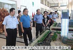 考察過程中,各位領(lǐng)導(dǎo)首先參觀了綠之韻集團(tuán)辦公大樓。從企業(yè)文化展區(qū)、現(xiàn)代化科技展示中心及五星級(jí)國際大酒店沙盤,到產(chǎn)品展示廳、黨團(tuán)工作展示區(qū)……長(zhǎng)沙市中級(jí)人民法院副院長(zhǎng)黎軍、長(zhǎng)沙市人民檢察院副檢察長(zhǎng)祝珍明、長(zhǎng)沙市僑聯(lián)主席翁少蘭等領(lǐng)導(dǎo)在胡國安董事長(zhǎng)的陪同下,邊走邊看,仔細(xì)詢問,不時(shí)點(diǎn)頭稱贊。