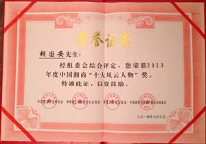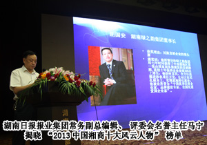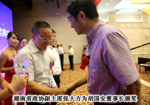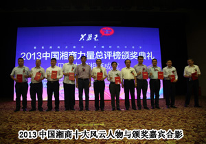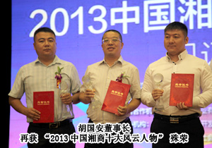 據(jù)悉,本次參加評選的企業(yè)家近200位,由省內(nèi)由各市州工商聯(lián)合推薦,根據(jù)其對企業(yè)成長、行業(yè)發(fā)展以及區(qū)域經(jīng)濟產(chǎn)生的重大影響等多項指標挑選出17名企業(yè)家于2013年年底起在天下湘商網(wǎng)上開展公眾網(wǎng)絡(luò)投票,并同步在《湖南日報》等主流媒體上刊登投票情況。最終,綠之韻集團胡國安董事長憑借多年來在湖南省的利稅大戶、解決就業(yè)、縣域經(jīng)濟、經(jīng)營模式等富民強省方面作出的重要貢獻,再獲殊榮。湖南省政協(xié)副主席張大方為胡國安董事長頒獎,胡國安董事長表示:在“中國夢”成為時代最強音的今天,中國商人應(yīng)該有敢為人先的視野和情懷?!?013中國湘商十大風云人物”稱號的獲得,鞭策我轉(zhuǎn)變價值觀,努力成為經(jīng)濟財富的創(chuàng)造者、公益社會的推動者、和諧社會的建設(shè)者、先進文化的創(chuàng)造者。在“忠誠、擔當、求是、圖強”新湖南精神的引領(lǐng)下,我將帶領(lǐng)綠之韻集團發(fā)揮湖湘文化的優(yōu)勢,在湖南“四化兩型”建設(shè)中,在“四個湖南”的建設(shè)中發(fā)奮作為,為富民強省、實現(xiàn)“中國夢”作出新的貢獻!