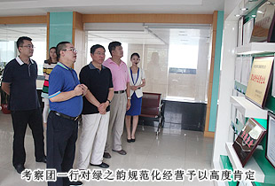 韓杰總隊(duì)長(zhǎng)一行首先參觀了綠之韻產(chǎn)品形象展廳,了解“以傳承中華五千年中醫(yī)藥養(yǎng)生文化”為使命的綠之韻中醫(yī)藥文化淵源和脈絡(luò)?!熬G色、天然、環(huán)保、健康、養(yǎng)生”的產(chǎn)品研發(fā)理念,以產(chǎn)、學(xué)、研結(jié)合為模式組建的產(chǎn)品科研團(tuán)隊(duì)都受到了韓杰總隊(duì)長(zhǎng)的充分肯定?!盀榱舜_保產(chǎn)品的品質(zhì),我們希望能夠更為全面的控制產(chǎn)品生物鏈上的所有環(huán)節(jié),包括原料、研發(fā)、生產(chǎn)和銷(xiāo)售,以打造綠之韻‘全產(chǎn)業(yè)鏈條’的產(chǎn)業(yè)結(jié)構(gòu)。我們擁有五大生產(chǎn)基地,其中益陽(yáng)萬(wàn)畝中藥材種植基地,為我們的保健食品提供了優(yōu)質(zhì)的產(chǎn)品原料,而‘綠之韻’進(jìn)一步督促我們注重產(chǎn)品品質(zhì),因此,綠之韻先后與南京大學(xué)、湖南中醫(yī)藥大學(xué)、湖南農(nóng)業(yè)大學(xué)、南方醫(yī)科大學(xué)等科研機(jī)構(gòu)、院校展開(kāi)戰(zhàn)略合作,共同服務(wù)于人類健康,全力打造‘產(chǎn)學(xué)研’成功合作典范”,綠之韻集團(tuán)董事長(zhǎng)胡國(guó)安向考察團(tuán)一行匯報(bào)。