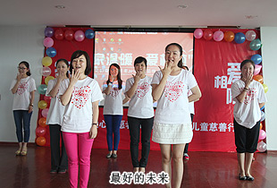 走進兒童活動室,一幅幅生動的場面映入眼簾:在老師的帶領(lǐng)下有的孩子在唱兒歌、有的在做游戲、有的在做康復(fù)訓(xùn)練,一張張?zhí)煺鏌o邪的面容深深地觸動著志愿者們的心靈。生活在福利院里的孤殘兒童,他們是不幸的,但又是幸福的,因為“我有一個幸福的大家庭!”