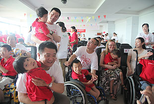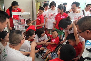 “福利院收養(yǎng)的孩子95%以上都是殘障兒童,其中腦癱又占絕大多數(shù),還有一些唇腭裂、肢體殘疾的患兒”,在衡陽服務(wù)了八年的英國籍、ICC衡陽春天福利院負責(zé)人愛麗向志愿者們介紹。在這里,還有許許多多的外教,他們遠離祖國無償義務(wù)服務(wù)在這里,這種無私的精神讓人欽佩和尊敬。在這里,也還有許許多多的“特護媽媽”,他們每天都在照顧著孩子,用自己的滿腔熱情和愛心,無怨無悔當(dāng)好孤殘兒童的家人,讓每位孤殘兒童都享受到家庭的溫馨、濃濃的親情;他們盡職盡責(zé)當(dāng)好老師,為每位孤殘兒童上好人生的第一課,用真情真愛為孤殘兒童撐起了一片藍天。