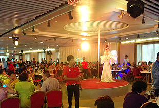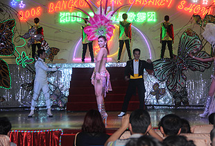 夜幕降臨,海岸亮起了燈火,在海風(fēng)的吹拂下,芭提雅變得神秘起來。大街上霓虹閃爍,旅人如織,處處回蕩著動(dòng)感勁爆的音樂,充溢著肆無忌憚的美色誘惑。東方公主號(hào)的人妖表演,也是當(dāng)?shù)氐奶厣?,這里集中了泰國最漂亮的人妖,的確一個(gè)個(gè)都是風(fēng)情萬種的,才藝出眾,讓精英們享受到這里獨(dú)特的異域風(fēng)情。