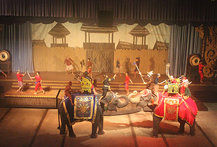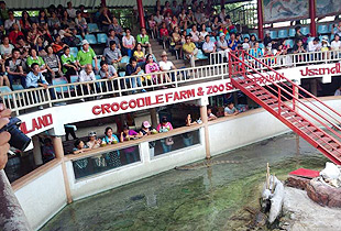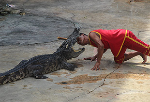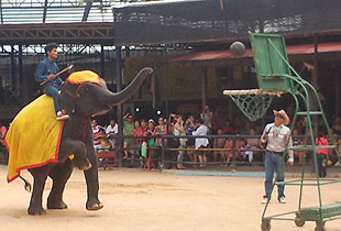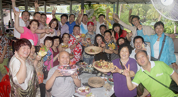 東芭樂園,占地面積1600多畝,是一個(gè)泰式鄉(xiāng)村風(fēng)格的休閑兼度假公園。園中有人工湖,水光瀲滟,小河繚繞于亭臺(tái)樓閣之間,樹木蔥籠,鳥語花香,景色如畫。園中設(shè)有文化村,是集中展示泰國民族文化的場(chǎng)所。園內(nèi)節(jié)目三大部分:一是泰國的民俗表演,二是大象表演,三是植物園。民俗歌舞很質(zhì)樸、很地道,表演者就是村寨中人;大象表演格外精彩。綠之韻精英們或看著表演,或與大象合影,或飲一口冰鎮(zhèn)的椰汁,各自用不同的方式享受著度假的閑適和快樂。