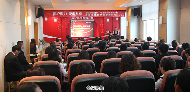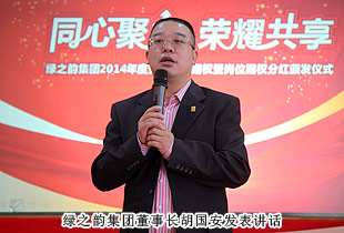 2014年5月17日下午,綠之韻集團(tuán)2014年勞動股份期權(quán)暨崗位期權(quán)分紅獎金頒發(fā)儀式成功舉行。綠之韻集團(tuán)董事長胡國安、董事常務(wù)副總裁勞嘉、財務(wù)總監(jiān)劉淑娟、綠之韻集團(tuán)總裁助理方彥雄、綠之韻國際商學(xué)院執(zhí)行院長孫心琥及全體員工參加了本次會議。會議由綠之韻國際商學(xué)院陳敏主持。