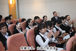 會上,綠之韻集團(tuán)總裁助理方彥雄、綠之韻國際商學(xué)院執(zhí)行院長孫心琥先后講授了《如何成為一名優(yōu)秀員工》和《職業(yè)生涯規(guī)劃與企業(yè)發(fā)展目標(biāo)》的精彩課程。綠之韻集團(tuán)董事常務(wù)副總裁勞嘉主持了2014年度綠之韻集團(tuán)崗位期權(quán)分紅獎金發(fā)放儀式,集團(tuán)公司各部門成員意氣風(fēng)發(fā),分別登臺接受頒獎,現(xiàn)場熱烈的掌聲此起彼伏。