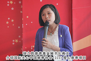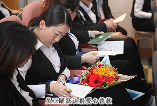 會議臨近尾聲,綠之韻慈善基金秘書長蔣文向大家簡單介紹了國際關(guān)心中國慈善協(xié)會(簡稱ICC),以及該協(xié)會在中國開展的一系列愛心慈善項(xiàng)目的情況。下月中旬,綠之韻集團(tuán)將聯(lián)合國際關(guān)心中國慈善協(xié)會(ICC)與走進(jìn)衡陽,開展幫扶孤殘兒童、殘疾青年的愛心援助項(xiàng)目,她代表綠之韻慈善基金發(fā)出了愛心捐贈的倡議。儀式現(xiàn)場,綠之韻人真情涌動,踴躍認(rèn)捐,伸出援助之手,獻(xiàn)出綿薄之力,用愛見證改變生命的力量,讓愛見證綠之韻人的力量!