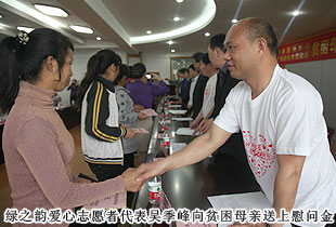 行大義,關(guān)注弱勢(shì)群體;踐善行,共筑社會(huì)和諧。據(jù)了解,中華慈善總會(huì)“貧困母親救助項(xiàng)目”每年的“母親節(jié)”期間都會(huì)開展關(guān)愛貧困母親的愛心活動(dòng),目前,已為全國近二十個(gè)省市區(qū)縣的貧困母親送去了溫暖。2013年,綠之韻集團(tuán)向中華慈善總會(huì)捐贈(zèng)了300萬元愛心專項(xiàng)基金,將用真誠而執(zhí)著的努力架起一座愛的橋梁,共同幫助貧困母親走出貧困,走向幸福!