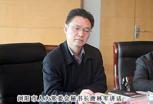 2014年3月11日上午,瀏陽(yáng)市人大常委會(huì)常務(wù)副主任孫建科、秘書(shū)長(zhǎng)唐林軍等一行蒞臨綠之韻集團(tuán)考察指導(dǎo)工作。長(zhǎng)沙市人大代表、綠之韻集團(tuán)董事長(zhǎng)胡國(guó)安,總裁助理方彥雄全程陪同。