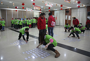 培訓(xùn)的第一天,為了讓大家快速進(jìn)入訓(xùn)練營(yíng)狀態(tài),零和(中國(guó))體驗(yàn)式培訓(xùn)機(jī)構(gòu)為大家?guī)Я司实耐卣菇坛獭M卣固赜?xùn)教練們首先進(jìn)行了分組,全體員工被分成十隊(duì)——“一馬當(dāng)先隊(duì)”、“先鋒二號(hào)隊(duì)”、“悍馬隊(duì)”、“蛟龍隊(duì)”、“超越隊(duì)”、“兵利隊(duì)”、“野狼隊(duì)”、“巔峰隊(duì)”、“寶馬隊(duì)”和“神馬隊(duì)”。每個(gè)隊(duì)選舉產(chǎn)生一個(gè)隊(duì)長(zhǎng),自編口號(hào)?!吧耨R一出,都是浮云”的口號(hào),彰顯自信,鋒芒畢露;“一馬當(dāng)先,綠韻最棒”的口號(hào)鏗鏘有力,霸氣十足;“兵利兵利,無(wú)往不利”的口號(hào),彰顯決心,激情澎湃……通過(guò)組建隊(duì)伍,明確了組織架構(gòu),為高效、有序地進(jìn)行團(tuán)隊(duì)項(xiàng)目做好鋪墊,初步形成了良好的團(tuán)隊(duì)氛圍。緊接著,十隊(duì)學(xué)員精神抖擻,士氣高昂,摩拳擦掌,先后進(jìn)行了“大海撈針”、“七巧板”、“沖出迷霧”等多項(xiàng)團(tuán)隊(duì)協(xié)作項(xiàng)目,明確了團(tuán)結(jié)合作、目標(biāo)分工、角色定位和執(zhí)行力的重要性,極大增強(qiáng)了全員對(duì)綠之韻的歸屬感和向心力。同時(shí),本次培訓(xùn)營(yíng)還安排了消防、安全知識(shí)及演練項(xiàng)目,進(jìn)一步增強(qiáng)了綠之韻全體員工的安全意識(shí)和自防自救能力,有效推進(jìn)了消防工作全員化。