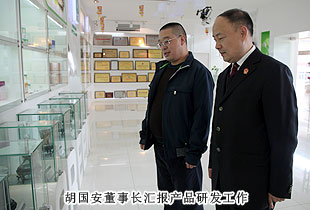 在綠之韻產(chǎn)品形象展廳,董事常務(wù)副總裁勞嘉向考察組一行介紹了綠之韻系列產(chǎn)品、產(chǎn)學(xué)研合作、企業(yè)文化等方面的相關(guān)情況。在集團(tuán)總部五樓會(huì)議廳,胡國(guó)安董事長(zhǎng)向考察組一行介紹了今年10月隆重舉行的綠之韻集團(tuán)十周年盛典,匯報(bào)了社會(huì)責(zé)任、規(guī)范經(jīng)營(yíng)、黨建工作等方面的相關(guān)情況。