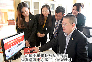 黨的十八屆三中全會勝利閉幕后,綠之韻集團黨總支部、團支部迅速行動起來,認真學習、理解、領(lǐng)會和實踐“十八屆三中全會”精神,在集團公司迅速掀起學習貫徹““十八屆三中全會”的熱潮。