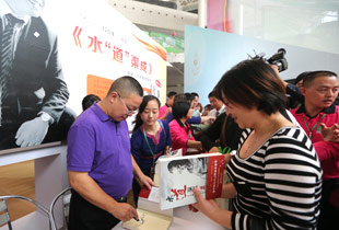 新書簽售展區(qū)前,胡國安董事長親臨簽售,幾十位政界、商界、校友、中國商務(wù)出版社代表蒞臨現(xiàn)場傾力助陣。簽售現(xiàn)場氣氛十分火爆,展區(qū)前很早就排起了長龍,人頭攢動,火爆異常,讀者、粉絲和綠之韻經(jīng)銷商有序排好隊(duì)列,索要簽名,爭相一睹“水文化”之集大成者董事長胡國安先生的風(fēng)采,不到1個(gè)小時(shí)1200多冊《水“道”渠成》搶售一空,許多后來的讀者、粉絲沒有買到新書,展區(qū)工作人員不得不緊急補(bǔ)充書源。
