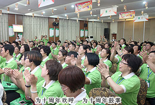 綠之韻十周年慶典總指揮、總裁助理方彥雄在致辭中表示:“十周年,是綠之韻一個新的起點。在這十年,我們因為相信選擇了綠之韻,因為夢想加入了綠之韻。在這十年中,我們肩負企業(yè)責任和歷史使命,歷經(jīng)風雨和挫折,揮灑汗水和淚水,在胡國安董事長的引領下不斷造夢、逐夢和圓夢。從2003年,綠之韻肇始、發(fā)軔,到2013年,綠之韻蓄勢、崛起。十年彈指一揮間,我們匯集了各路精英人杰,創(chuàng)造了‘綠之韻’這個卓越的品牌和事業(yè)平臺,幫助成千上萬心懷創(chuàng)業(yè)初衷、渴望走向成功的普通人走上了夢想的舞臺,收獲了健康、快樂和幸福,實現(xiàn)了自己的人生價值。2013年,是綠之韻永續(xù)經(jīng)營、永遠創(chuàng)業(yè),全面大踏步邁入大健康產(chǎn)業(yè)的發(fā)展元年。未來十年,只要我們秉承“水”的精神,統(tǒng)一思想認識、統(tǒng)一目標指向、統(tǒng)一行動步伐,不斷地創(chuàng)新、突破、跨越,就會取得比過去的十年更加輝煌的成就!”