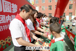 孩子是祖國的花朵,書是祖國的未來。在這個信息量巨大的社會,孩子的求知欲望從簡單的課本知識已經(jīng)延伸到生活的各個知識層面。臨近“六一”,內(nèi)蒙古呼和浩特市回民區(qū)通道街回族小學(xué)的孩子們收到了一份沉甸甸的兒童節(jié)禮物——“綠之韻集團內(nèi)蒙古愛心圖書館”正式在這里落戶。2013年5月31日,綠之韻集團將價值20萬元的愛心圖書送到了通道街回族小學(xué),為孩子們送去了寶貴的知識財富,也為他們打開了一扇“希望之窗”。綠之韻集團市場營銷中心(中國區(qū))副總經(jīng)理諶獻軍、市場營銷中心(中國區(qū))市場總監(jiān)劉維利、綠之韻集團內(nèi)蒙古分公司經(jīng)理侯立新、綠之韻集團國際商學(xué)院特聘講師李娜、邵亦冉,以及內(nèi)蒙古經(jīng)銷商發(fā)展委員會王連坤、郝建兵、張聞英、張聞華、喬桂英等20多位委員出席了活動。