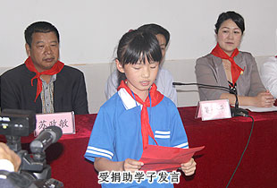 初夏的雨水,濕潤(rùn)了洞陽大地;真情的幫扶,溫暖了困難學(xué)生的心窩。儀式上,首先由工業(yè)園實(shí)驗(yàn)小學(xué)學(xué)生代表為各位代表和愛心人士佩戴紅領(lǐng)巾。鮮艷的紅領(lǐng)巾,是孩子們心目中最為珍貴和圣潔的禮物,凝聚著孩子們濃濃的感激之情和感恩之心。隨后,工業(yè)園實(shí)驗(yàn)小學(xué)羅校長(zhǎng)致歡迎辭,他對(duì)各位領(lǐng)導(dǎo)、嘉賓的到來表示歡迎,對(duì)各位代表和愛心人士的慷慨解囊和無私援助表示衷心的感謝。